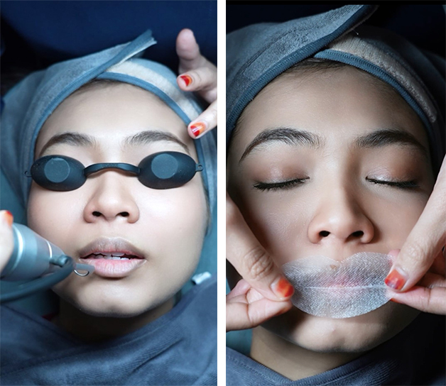 The treatment begins with gentle cleansing, followed by precision laser pulses targeted to the lips and vermilion border. You may feel a mild tingling or warmth—no pain, no peeling, and no interruption to your day.